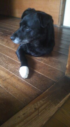 シャンプーをした後、薬を塗り、舐めないように包帯をしっかりして、手当てをしてあげました。